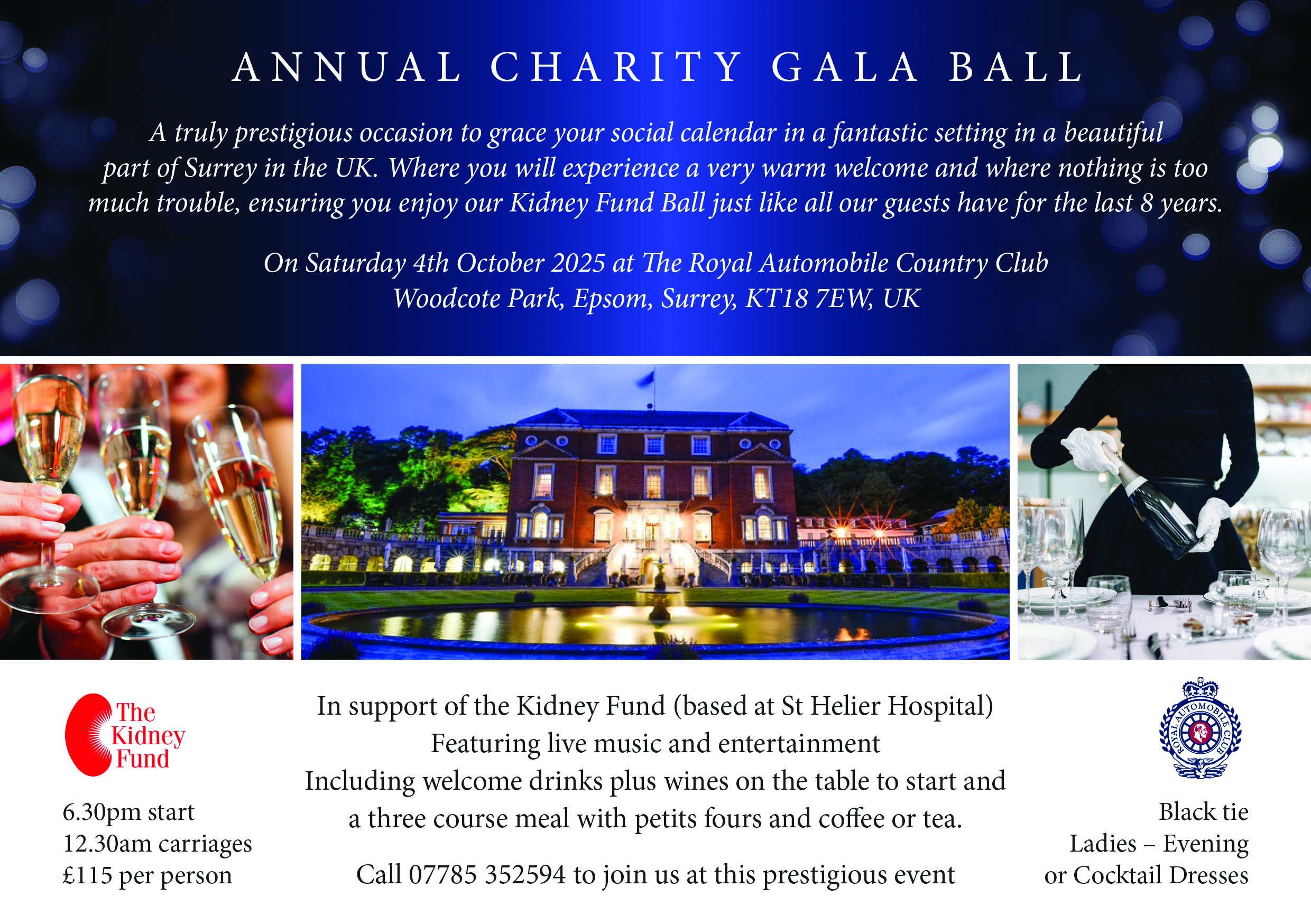 This will be our 6th Kidney Fund Ball at the prestigious Venue, The RAC Country Club, Woodcote Park, Epsom Surrey KT18 7EW